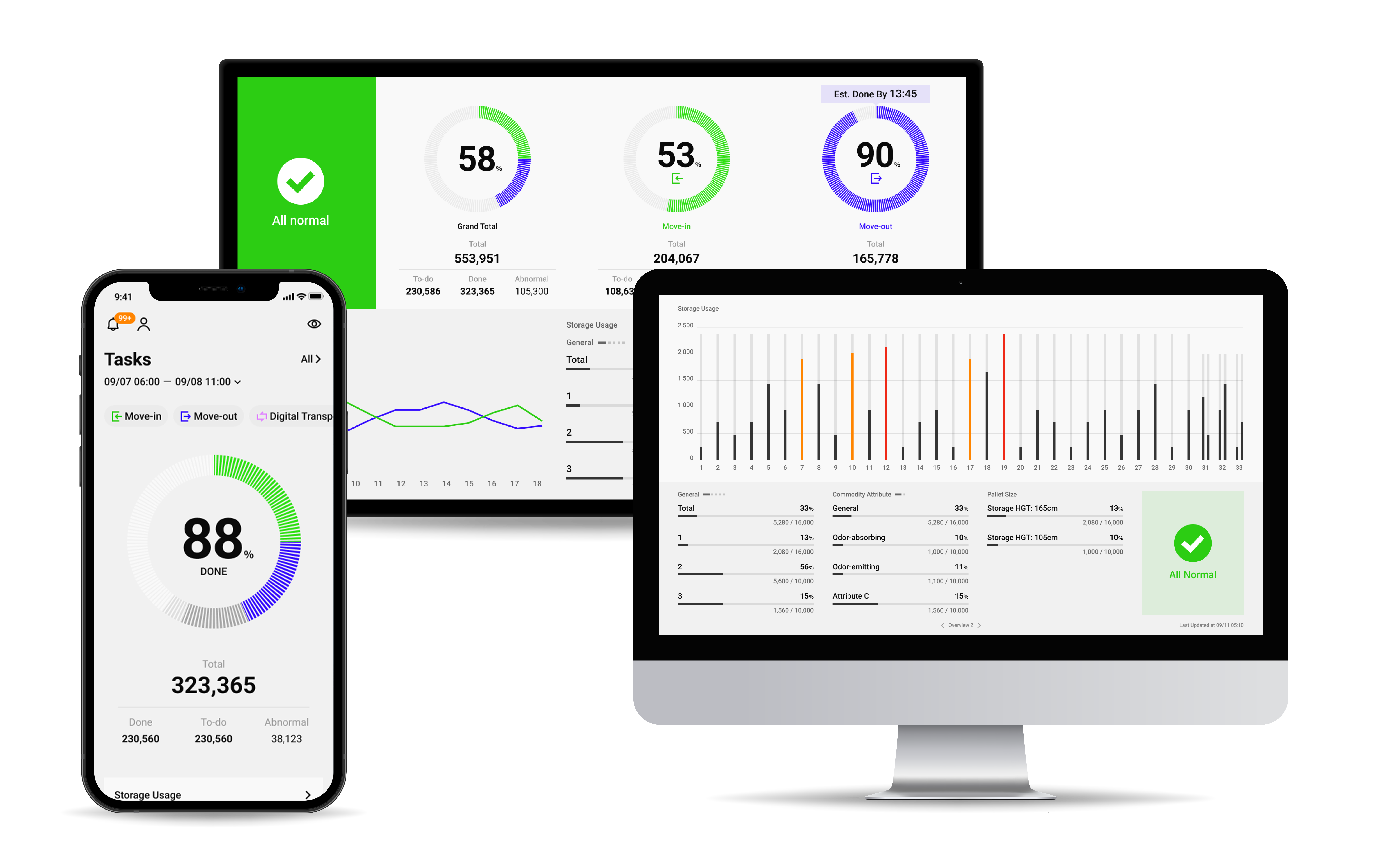ALPOS connects AS/RS, AGVs, IPort/OPort, and robotic arms into a fully integrated smart system, enabling real-time monitoring and scheduling for zero-delay operations, while consolidating warehouse data to optimize routing and resource utilization.